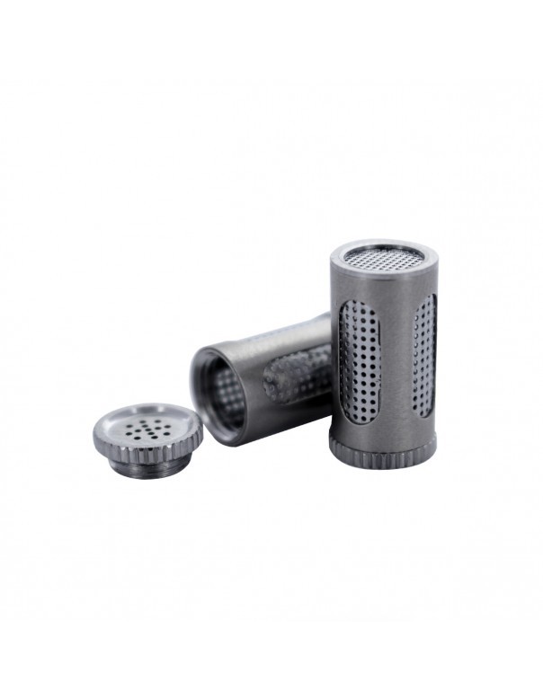 Los recipientes precargados para hierbas (fabricados en acero inoxidable) están diseñados para el disfrute sobre la marcha y sin complicaciones. FlowerMate le da la máxima flexibilidad permitiéndole pre-llenar las cápsulas en casa. Sólo hay que poner la cápsula en el vaporizador y está listo para su uso. El acero inoxidable protege la cámara de calentamiento lo que hace que sea más fácil de limpiar.